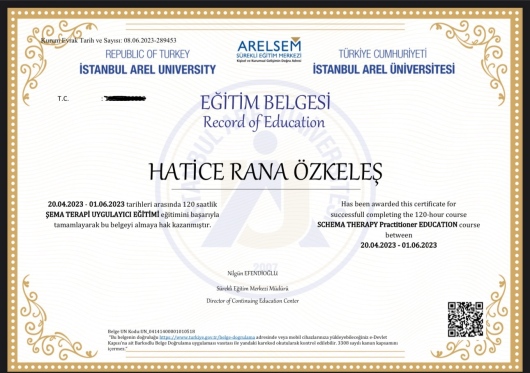 Aile içi geçimsizliğin sosyal hayatıma olumsuz yansımaları sonucu Rana Hanımla onlıne seanlara başladık. Verdiği egzersizler ve çalışmalar ile 9. seansımızın sonunda hayatıma dair güzel dokunuşları olduğunu, davranışlarımın değilmesi ile görmeye başladım. Katkıları için kendisine teşekkür ediyorum. Gönül rahatlığıyla tercih edebilirsiniz.